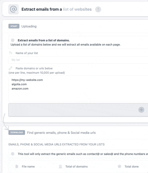 Grab emails, phones & socials in one click.- Upload any list of websites and extract verified emails fast